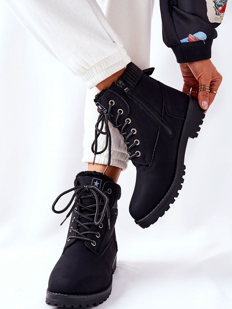 The trappers already look great at first glance, especially when styled for colder days. The outer part of the shoe is made of ecological leather. The interior of the trappers is insulated. The boots can be put on very easily and quickly, thanks to a zipper. In order not to take away from the elegance of the boots, the manufacturer also allowed the possibility of tying the boots with laces. You can choose yourself how you will put them on!