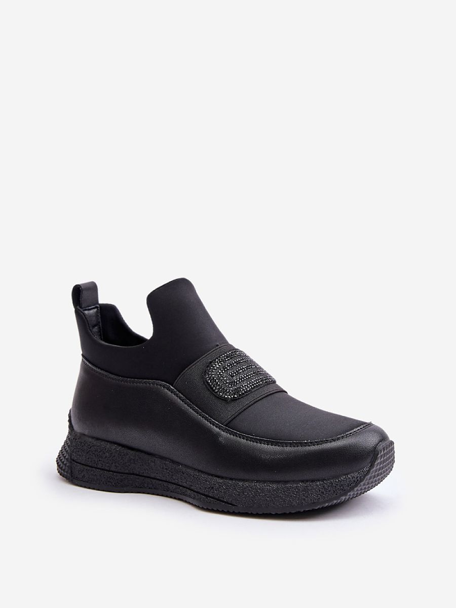 Sports shoes made of a combination of natural leather and fabric. Set on a platform. Insulated inside with a shoe blanket, which makes them an ideal choice for colder days. There is a shiny element on the front on the strap, which adds an elegant touch to the whole.