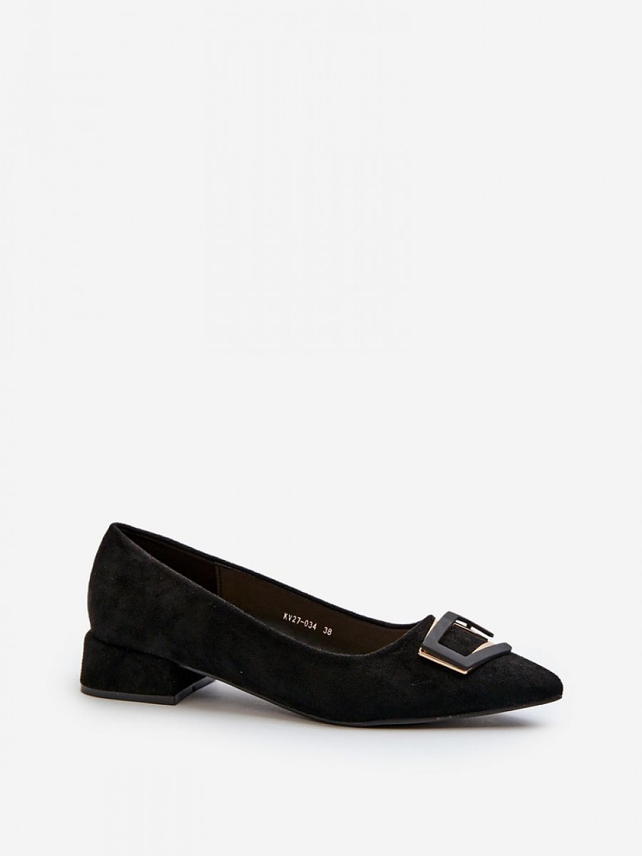 Elegant pumps made of high-quality eco-suede. Low, stable heel will ensure comfortable wearing all day long. Pointed nose gives a slender look. In addition, a subtle ornament placed on the front of the pumps catches the eye and adds a unique character. Ideal for both everyday and more formal styling.
