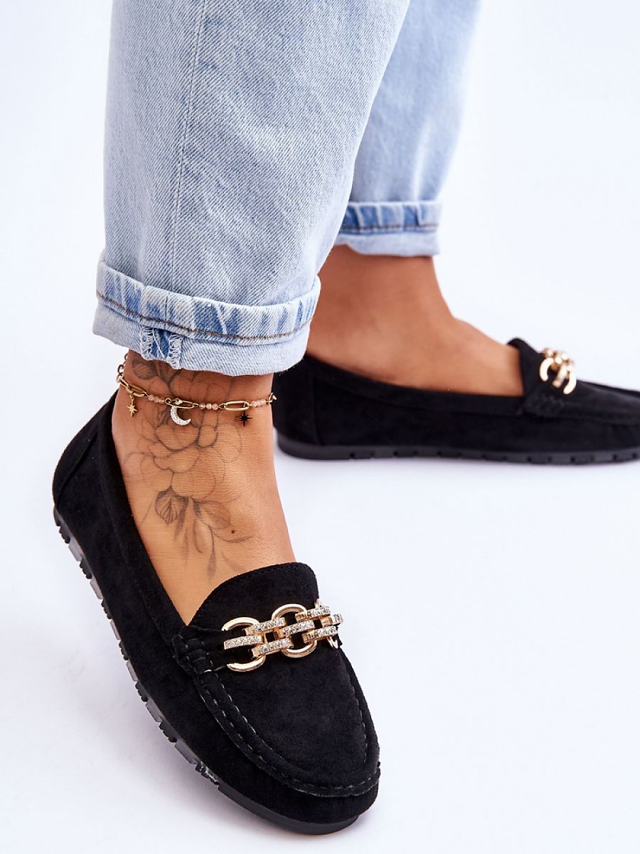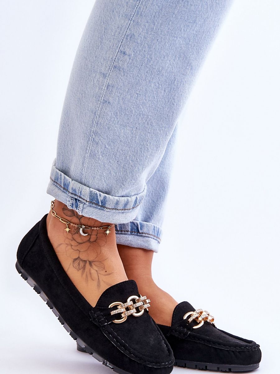 Women’s moccasins were made of eco-suede. They have a decorative chain with rhinestones on the front. The moccasins are set on a platform with a rubber, non-slip sole. Soft eco leather insole will ensure comfortable use. You should definitely have them!