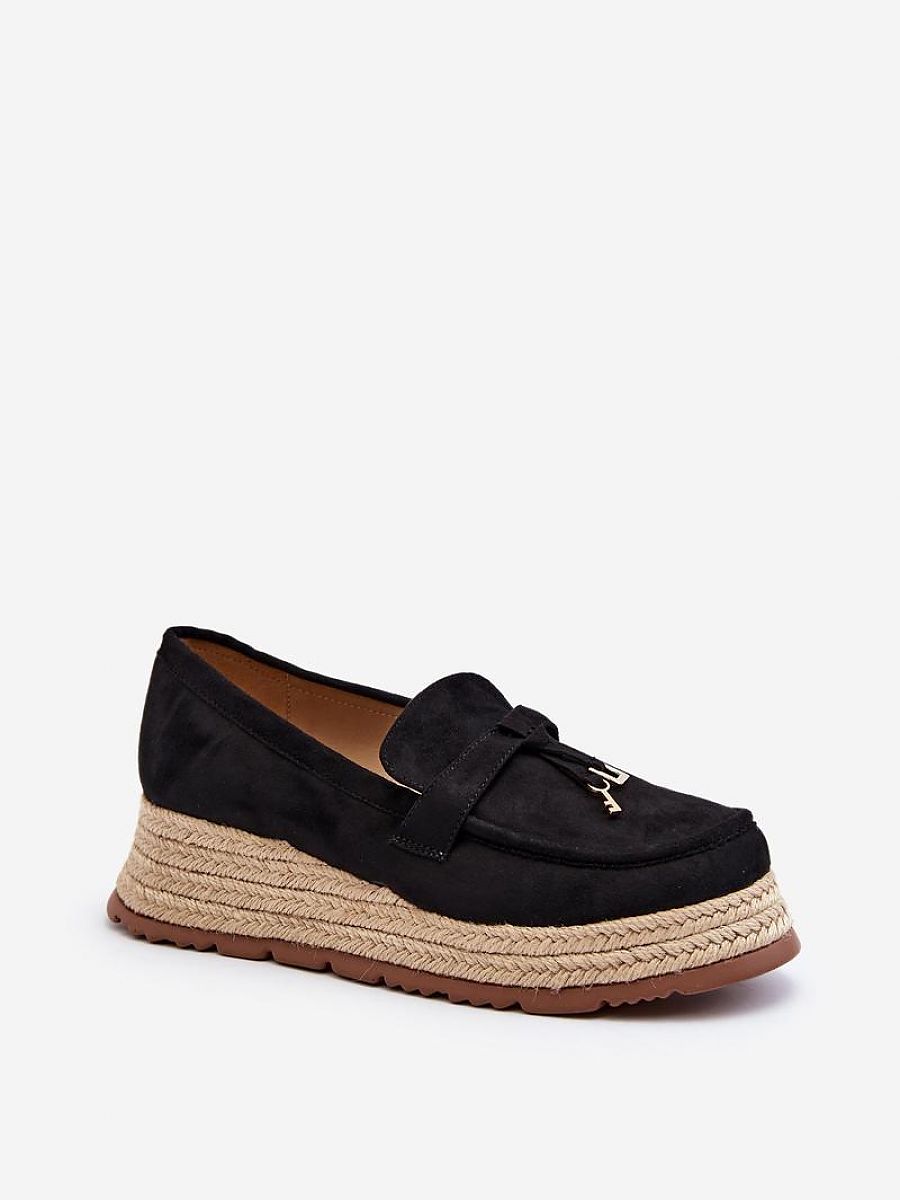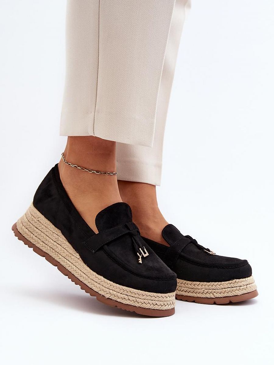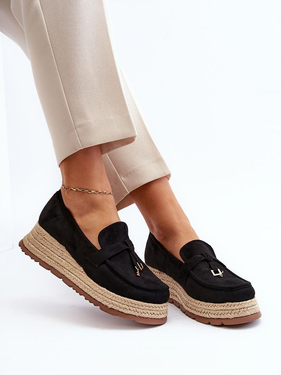 Comfortable women’s moccasins are made of soft eco-suede. Set on a braided platform and an anchor. The noses are rounded. Their universal design will allow you to match them with many different styles. You absolutely must have them in your spring-summer closet!
