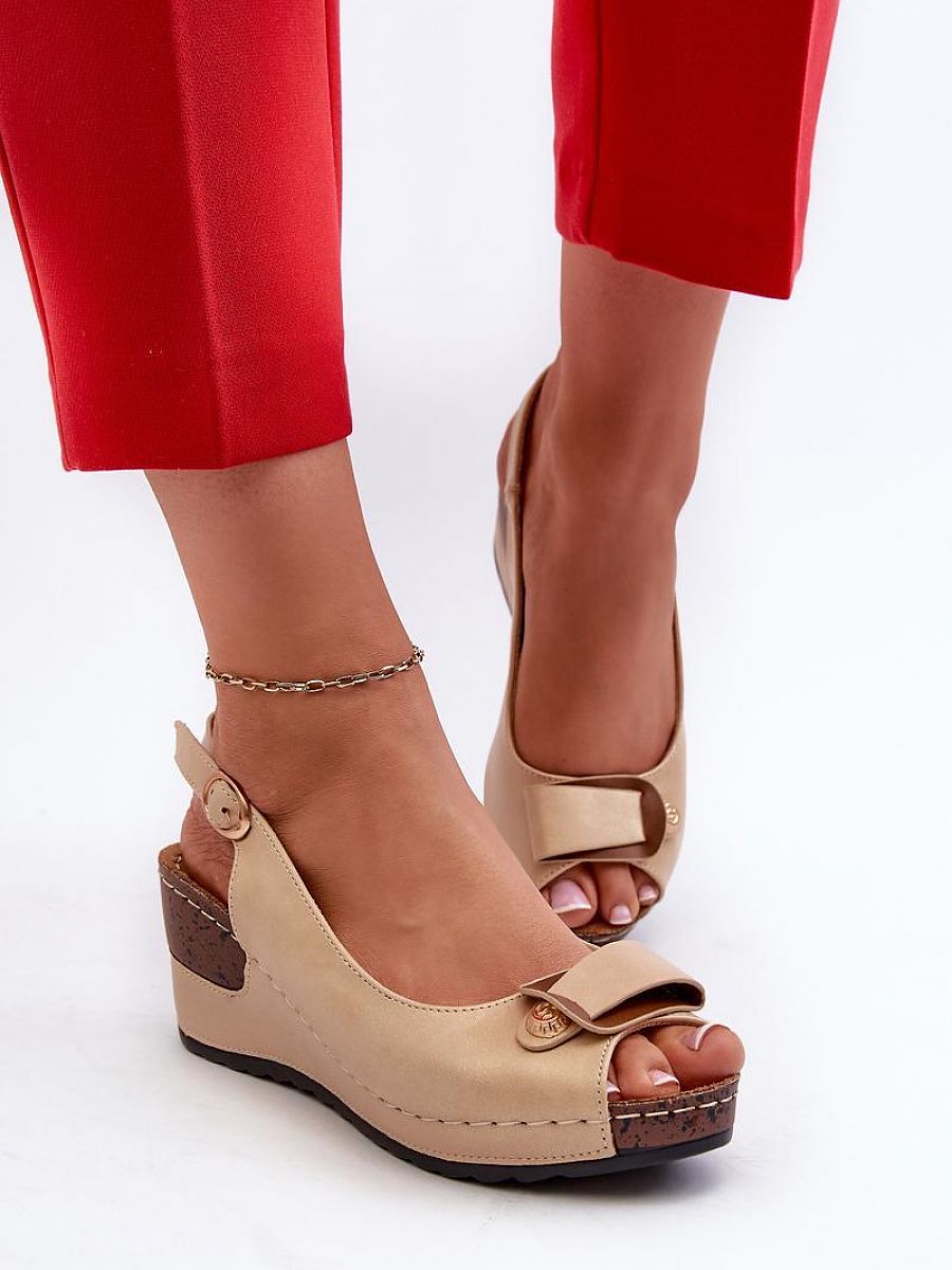 Women’s sandals made of eco leather. Set on a wedge heel. Fastened with an adjustable buckle strap, allowing for precise fitting to the foot. The soft Comfort insole with a cushioning effect is extremely comfortable during use.