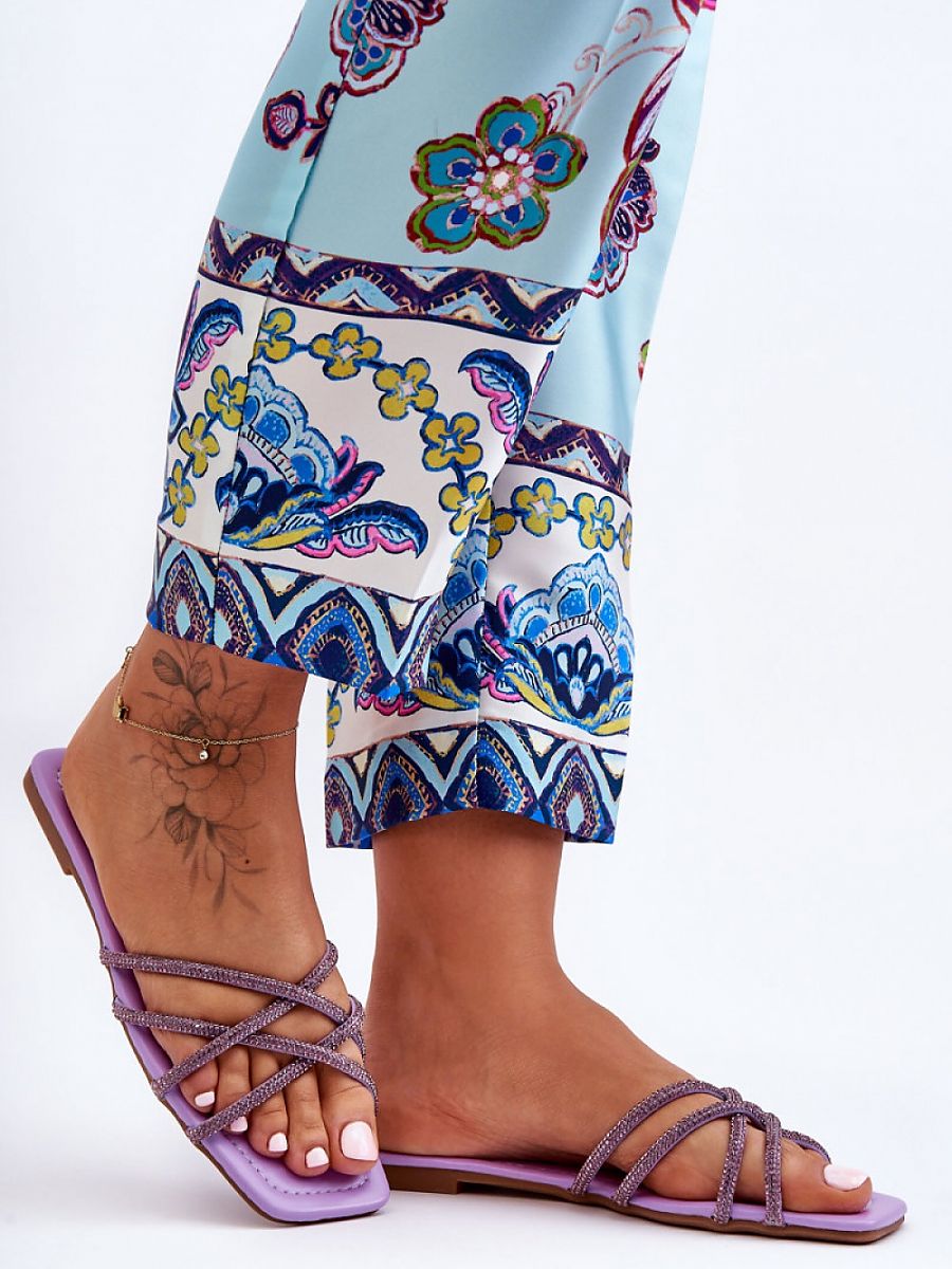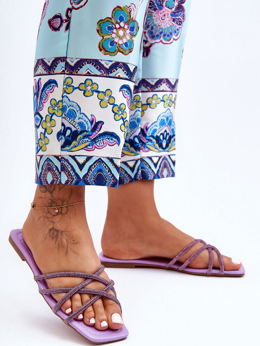 Elegant women’s flip-flops are made of fabric on top. The straps on the front intertwine with each other and are decorated with rhinestones imitating zircons. The flip-flops have a soft and comfortable insole made of eco leather. This footwear is the perfect footwear for many outfits in hot weather! You should definitely have them!