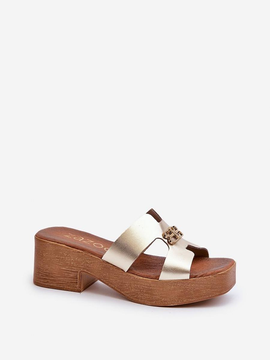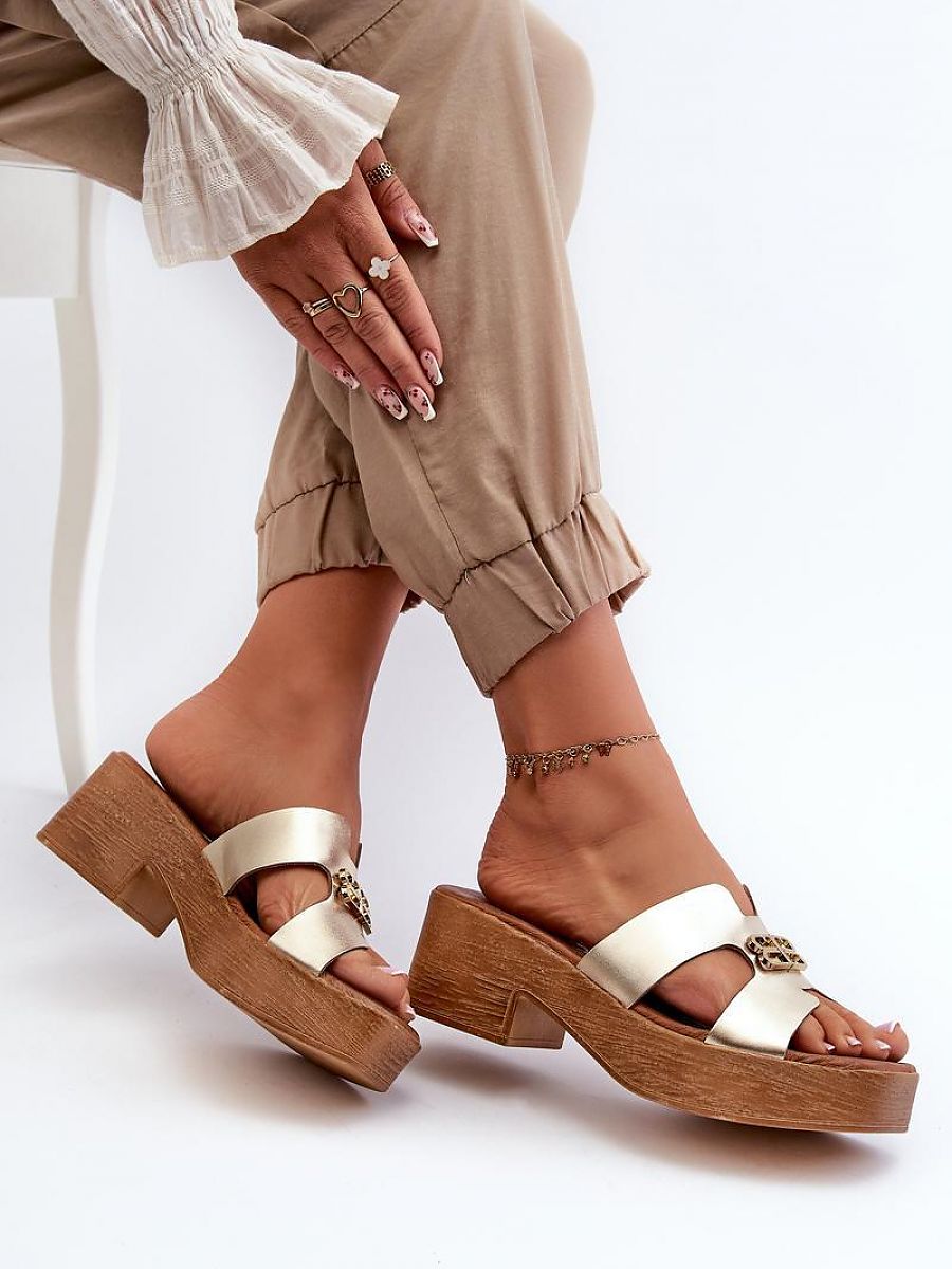 Elegant women’s leather flip-flops. The gold ornament adds a touch of elegance to them. Perfect footwear for summer evenings or meetings where you want to feel both stylish and comfortable.