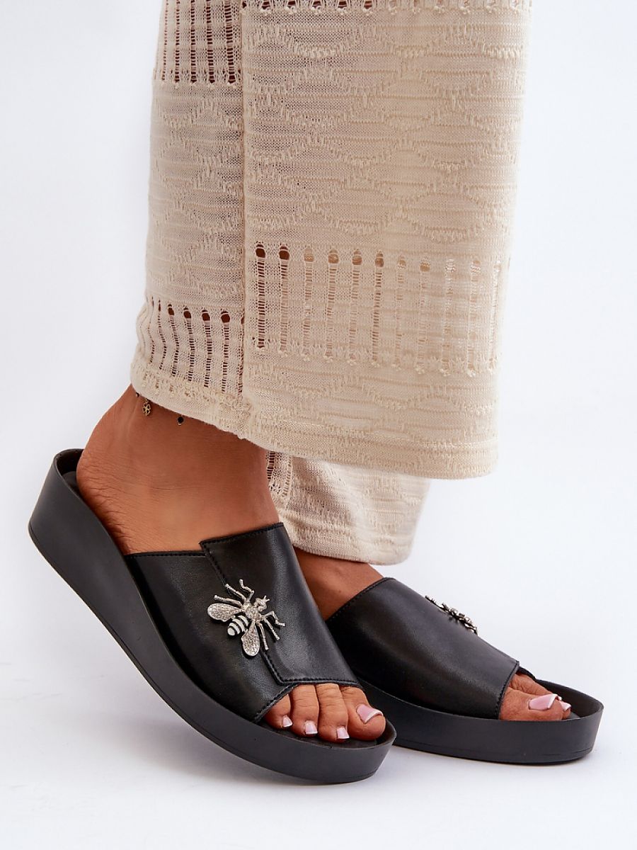 Women’s flip-flops made of high-quality natural leather are a combination of elegance and comfort. Set on a stable platform and a delicate anchor. The soft insole, also made of natural leather, guarantees comfort all day long. A charming ornament placed on the strap adds unique charm and style, making them an ideal choice for various occasions, from everyday walks to more elegant outings.
