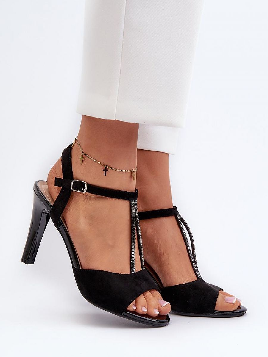 Heels sandals made of faux suede are a perfect choice for women who appreciate elegance and comfort. Embellished with straps, they add a subtle charm. The stiletto heel gives a feminine character, perfectly matching with both dresses and pants.