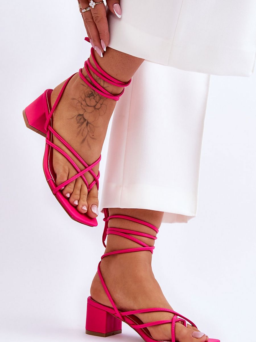 Unique sandals with binding around the calf! This model is in the cut of flip flops. The sandals have thin straps, which makes them extremely airy. Set on a heel in the form of a low post. The sandals-flip flops have an open, square nose. This model is sure to please you!