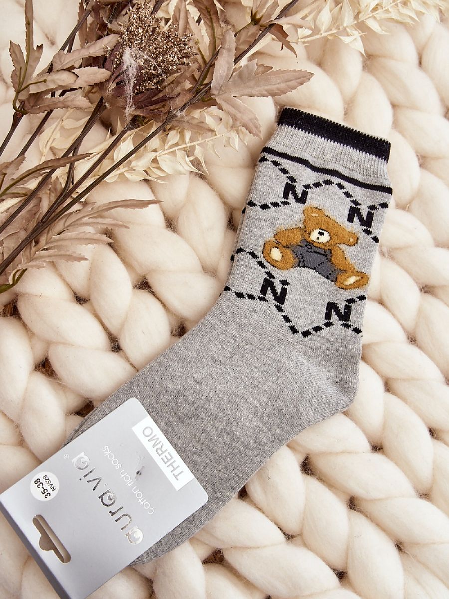 Warm women’s socks ideal for cold days. Model with a patch in the form of a teddy bear. The lightweight ribbing will make them perfectly adapted to the leg’s stiffness. You should definitely have them!